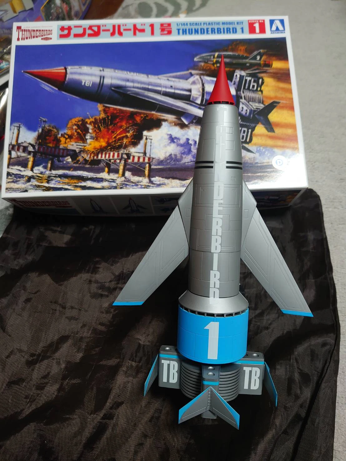 長い歴史を持つ伝説的のプラモの電動復刻版です。相当古い金型のプラモなため苦労したところも多いですが、無事にギミック含めて完成することができて本当に良かったです。かっこいいぞサンダーバード5号。