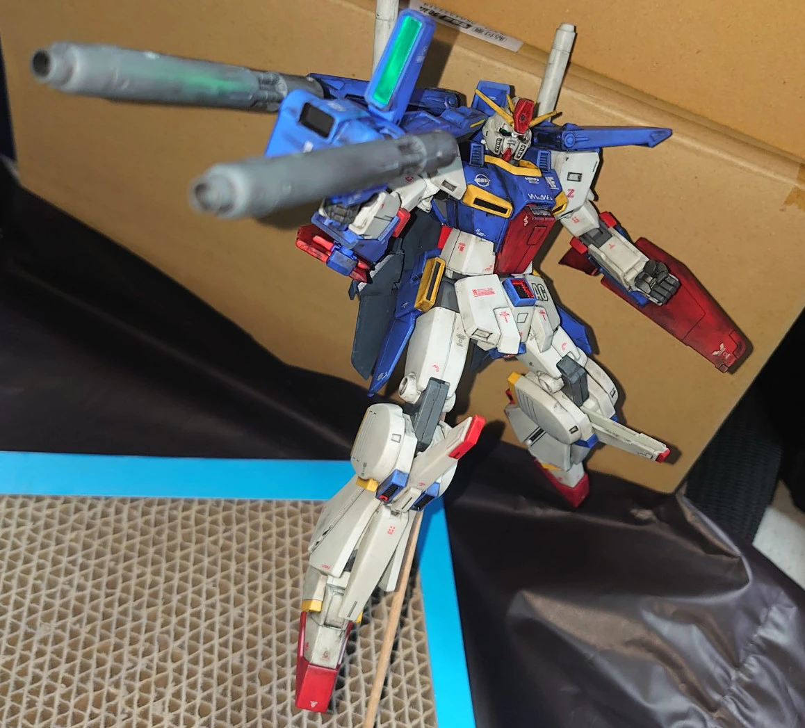 ずいぶん前に作りかけのまま長年放置してたやつをようやく完成させました。キット自体が比較的古めのなのと変形の都合で可動域は狭いですが、ZZガンダムのプラモとしての満足度は高いです。Gフォートレス用にもう1個ほしいな。