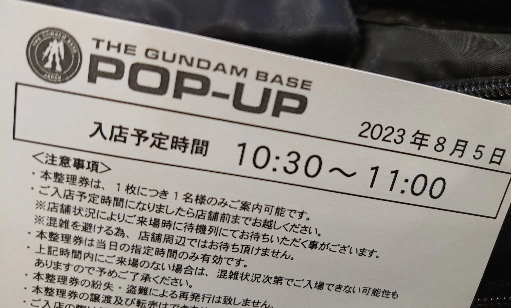 この日も大体7時くらいに並び始めましたが、この時点でかなりの人がいて初めて整理券が10:30でした。まぁ、新商品なら在庫あるだろうし大丈夫やろ……と思っていたのですが、なんと11:30にトロハチが売り切れてしまい、その後すぐにナラティブ覚醒も売り切れたという情報が。結構ギリギリだったんですね。コミケかよ。あぶないあぶない……。