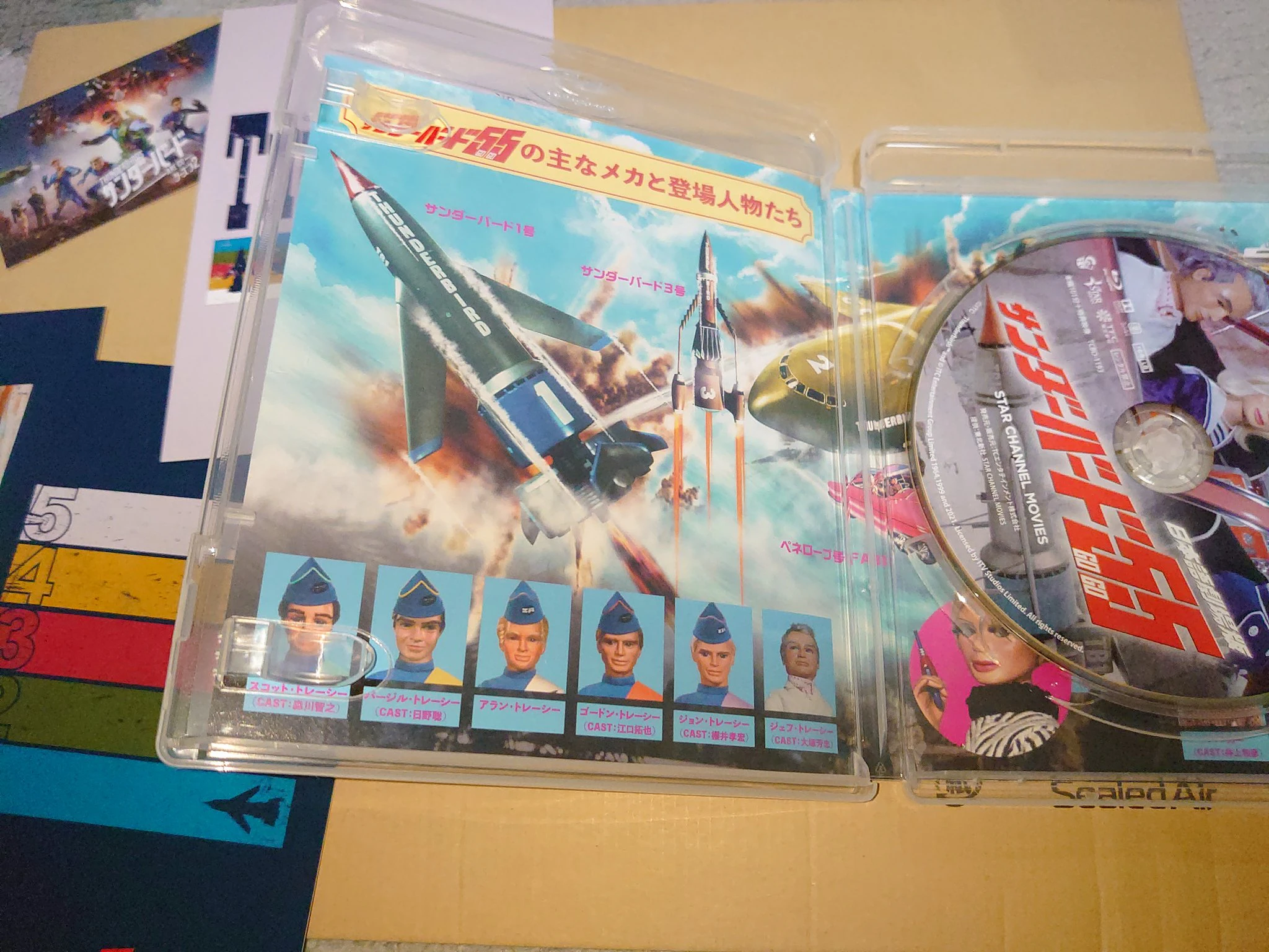 当然ながらサンダーバード以外の映画もやってるので物販がかなり混雑してましたね。あれぇ平日なのにおかしいなぁ……みんなニートなのだろうか(失礼&ブーメラン)。ちなみにぼくはニートではないです(念のため)。マジレスすると出勤前の人が多いんだろうね。上映前にとりあえず手持ちの資金で買えるグッズと先行BDとパンフは確保しました。このときはまさかこれらのグッズが入手困難な代物になるとは思わなかった。場所によっては初日で完売したところもあるらしい。絶対見積誤ったやろ。っていうかBDが2000個しか生産してないのはちょっとどうかと思った。