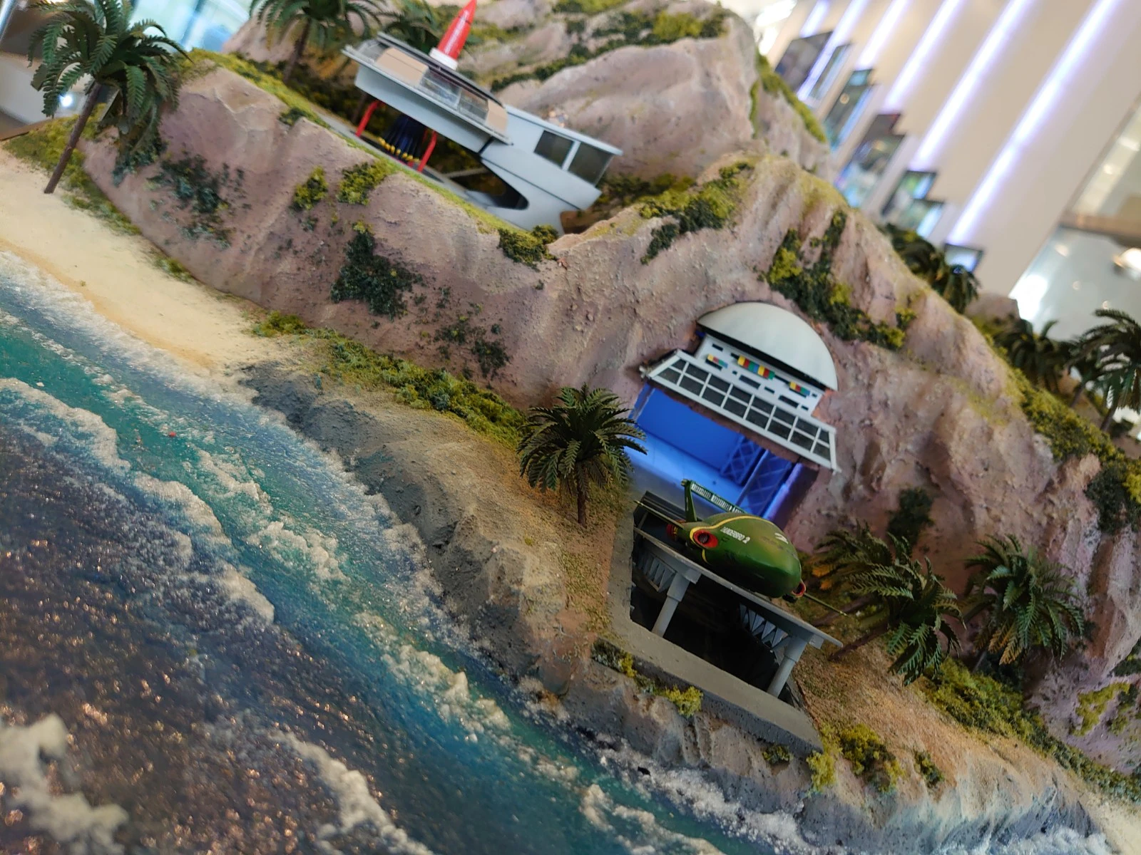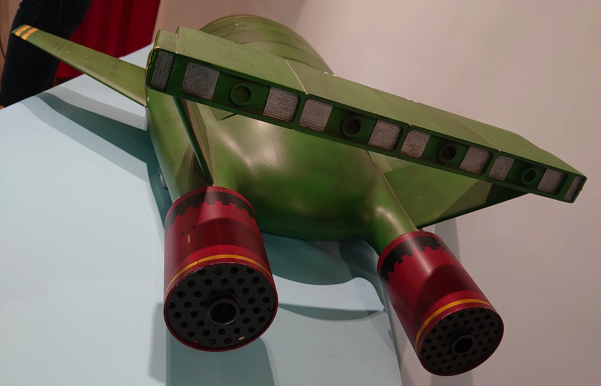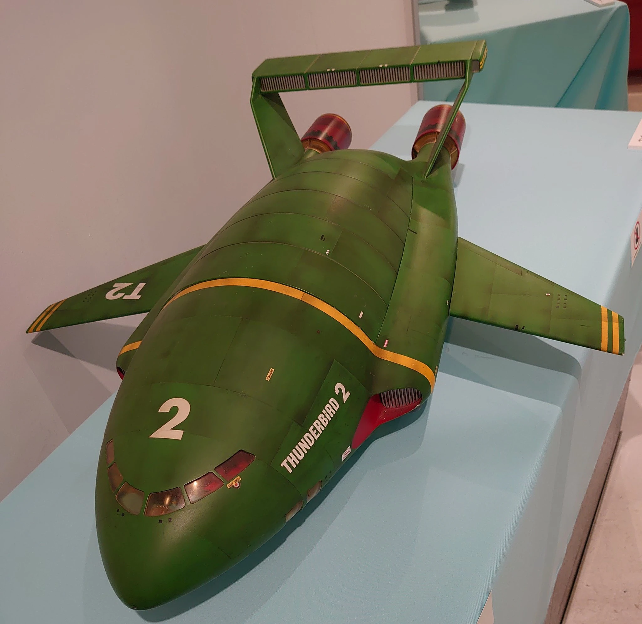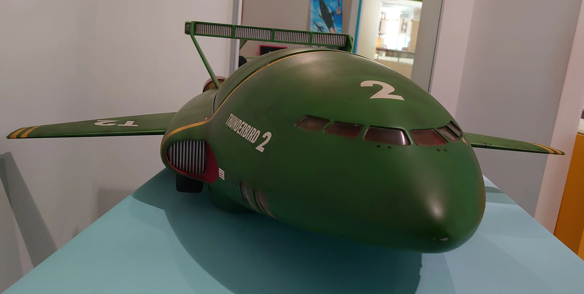 サンダーバード2号の撮影プロップの写真をいくつか撮ったのでここに一挙載せておきます。ちなみにコクピットの中にバージルがいたのですが上手く撮れませんでした。