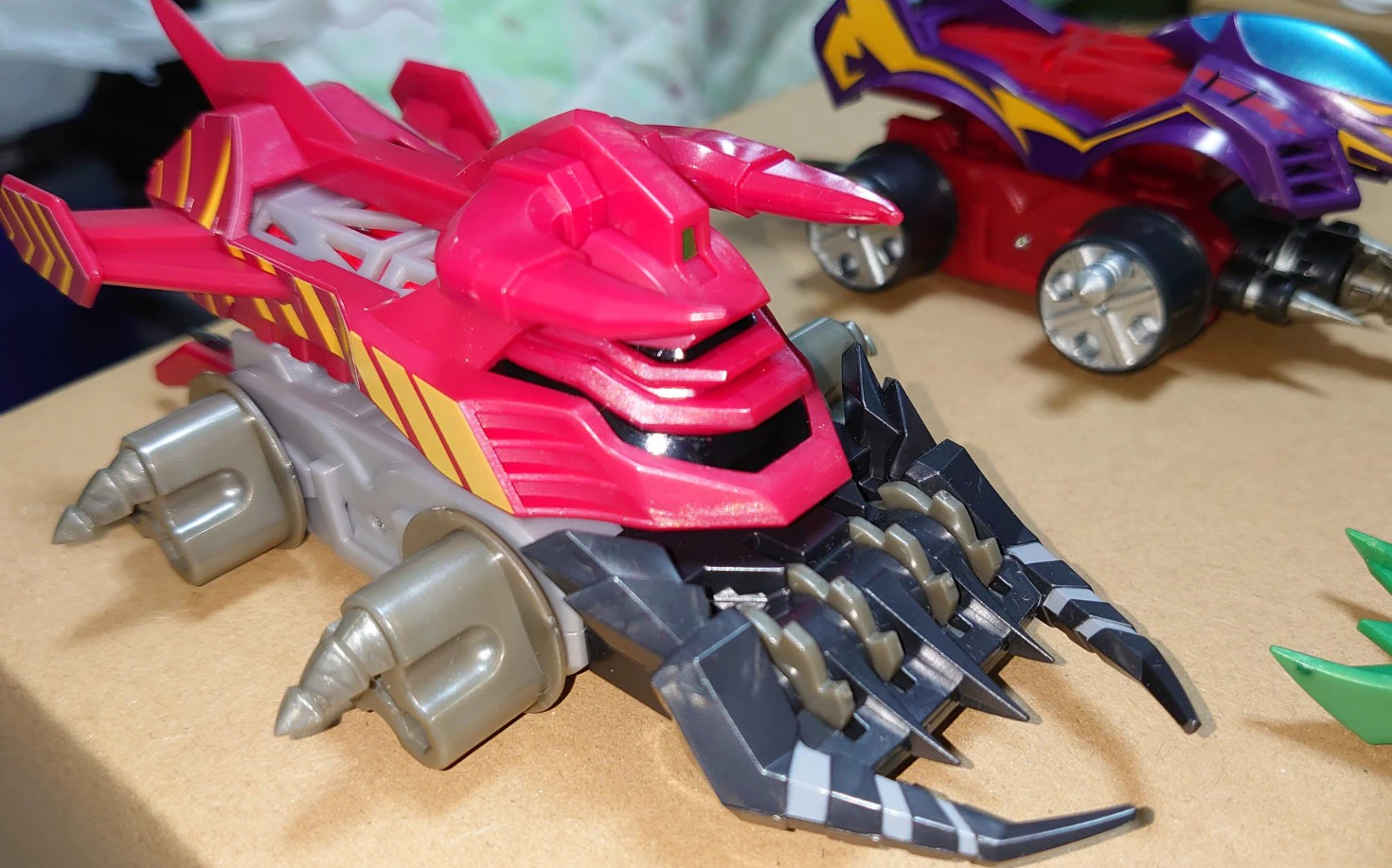ディノスパルタンは他のギアと比べて色分けが再現しきれてないと感じますが(おそらく成形の都合)、ホイールウェポンさえ塗装しておけばイメージ通りになると思います。また、ディノスパルタンのホイールは左右でデザインが違うので組み立てるときは気を付けましょう。SMPはこういうホイールの細かい違いも再現してるのはとても良いですね~(なおレイジングブリット)。