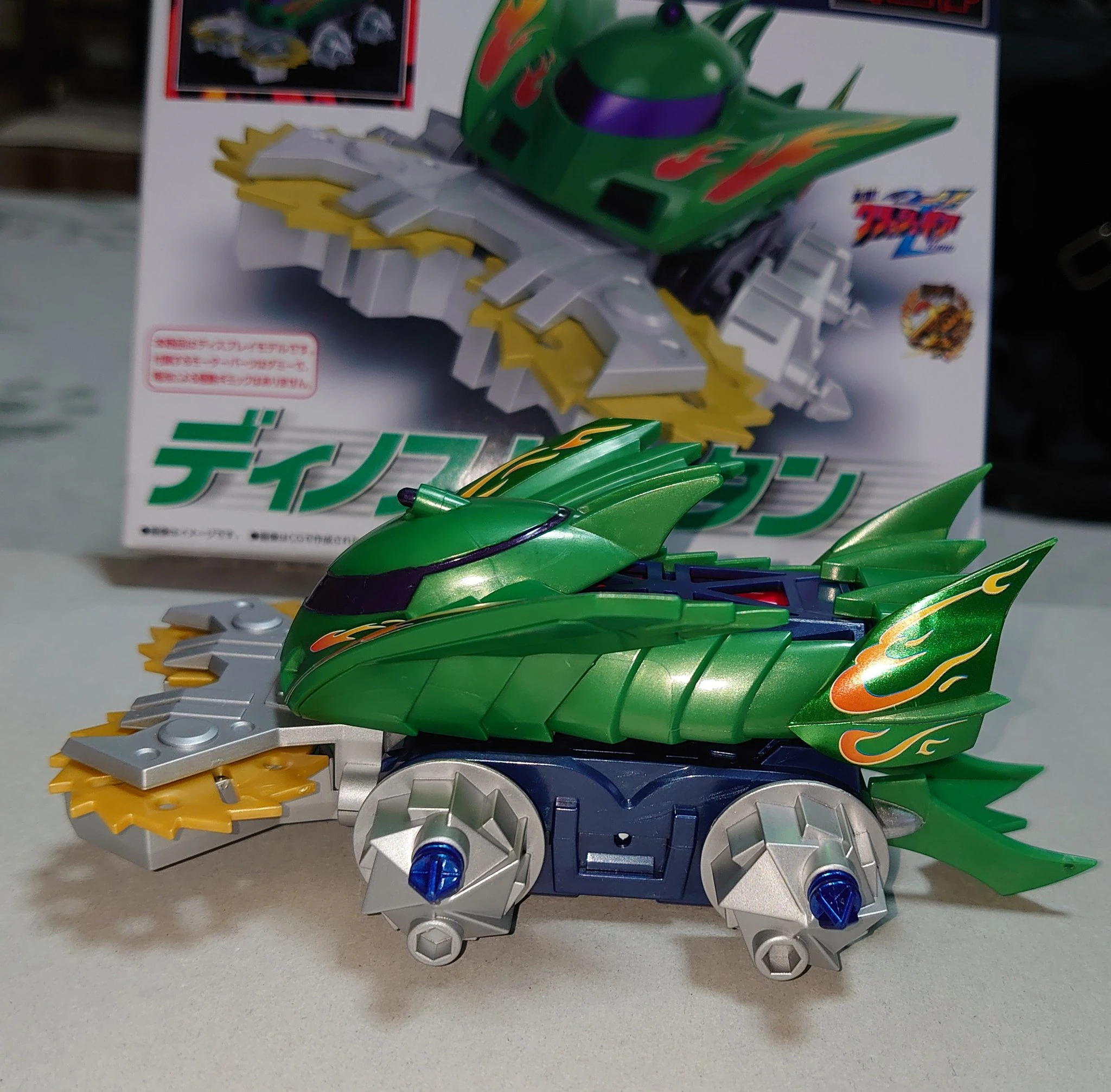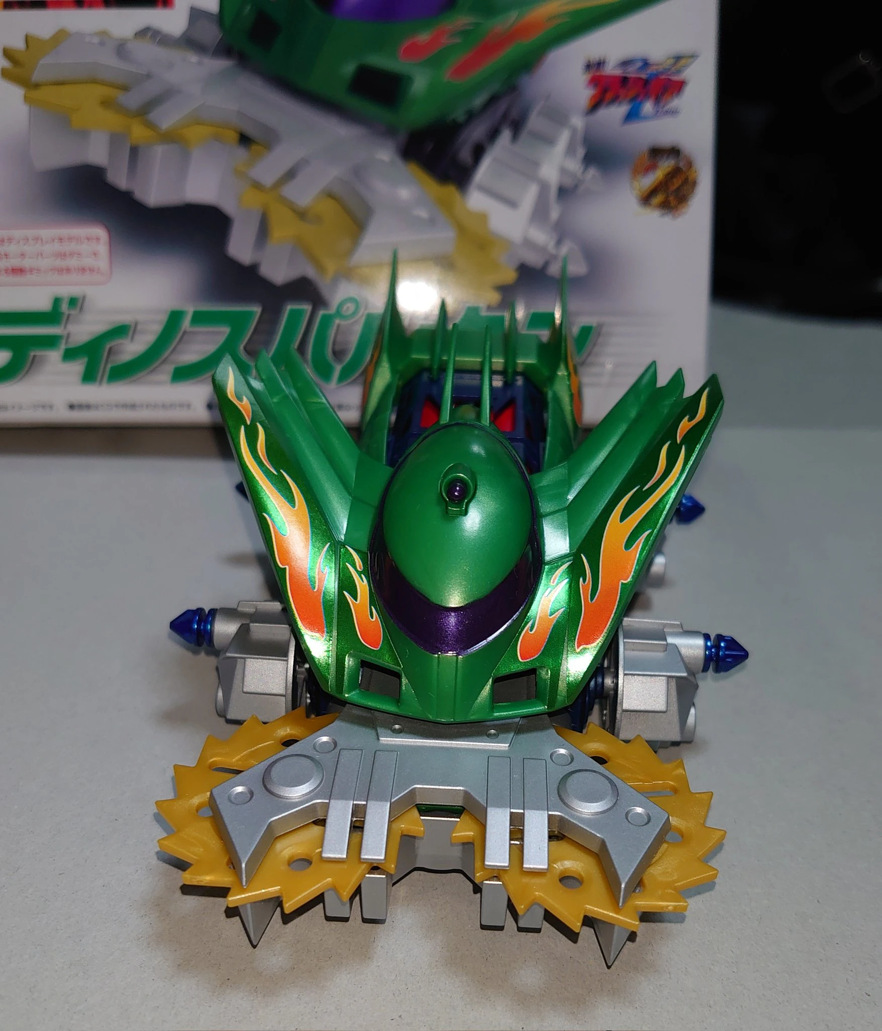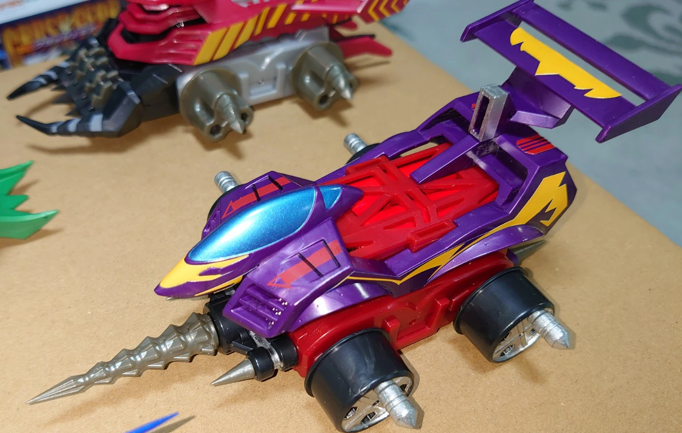 アニメのクラッシュギアはファイターのメンタルに応じてボディの色が変化するなど、心を映し出す鏡のような扱いをされていることが多いが、このディノスパルタンはまるでギア自身が意志を持ってキョウスケのために呼応しているかのような動きを見せる。