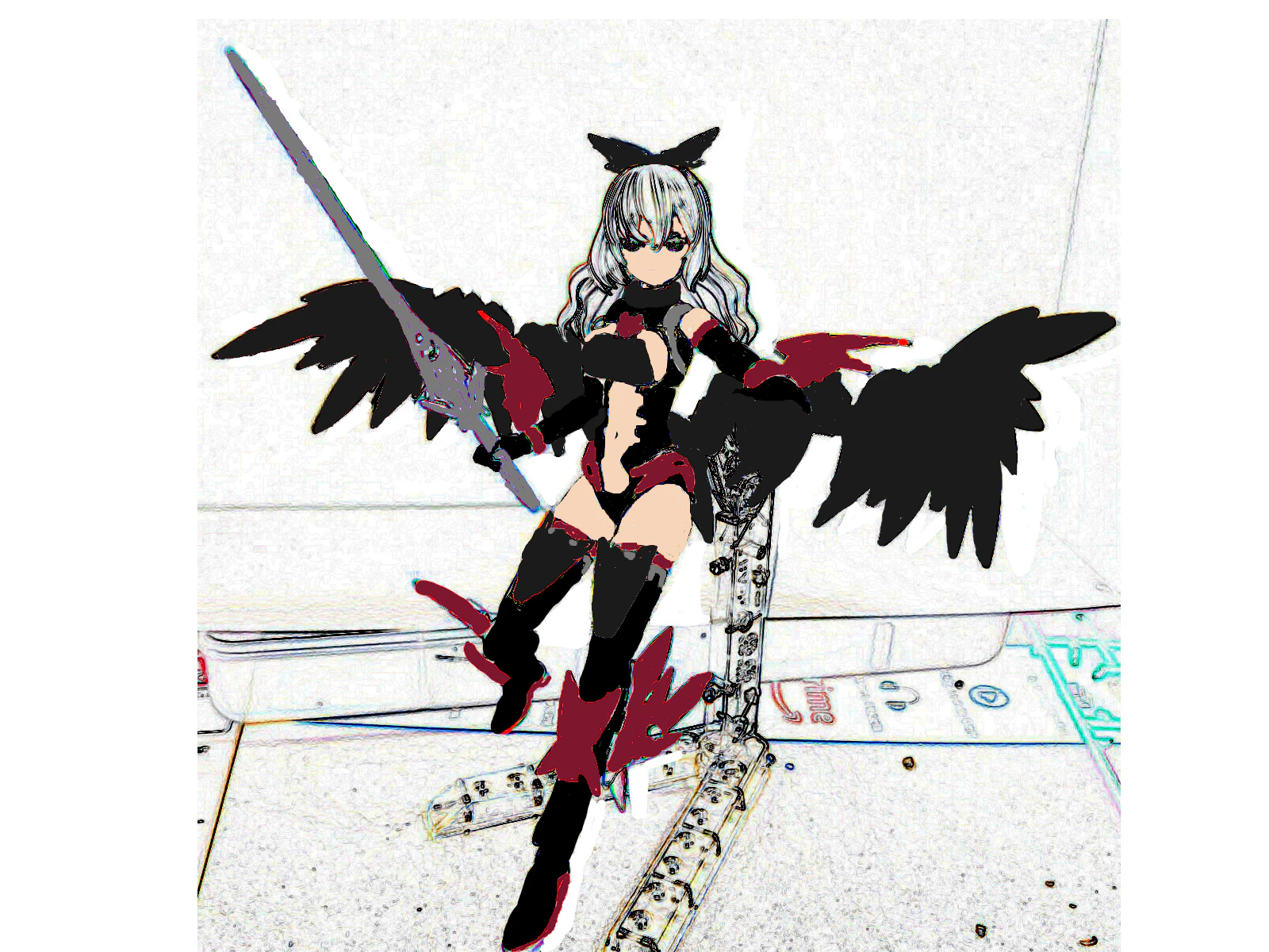 最初に「悪魔っぽい感じのクールな剣使い」という設定だけ考えて、それに合うパーツを見繕ってパチパチしていき、一旦形になったら塗装前にペイントツールを使って色の組み合わせをこんな感じで考えました↓
