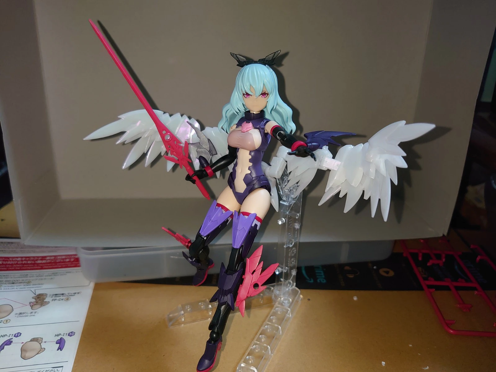 翼のパーツはエリエネから拝借しましたが、偏向パールで成形されているパーツを塗装することに若干のためらいありました。しかしここで日和ってたらプラモなんて作れねえ!!!と思い「えいやっ!」という気持ちでがんばりました。結果的に満足できる形になったのでよかったです。