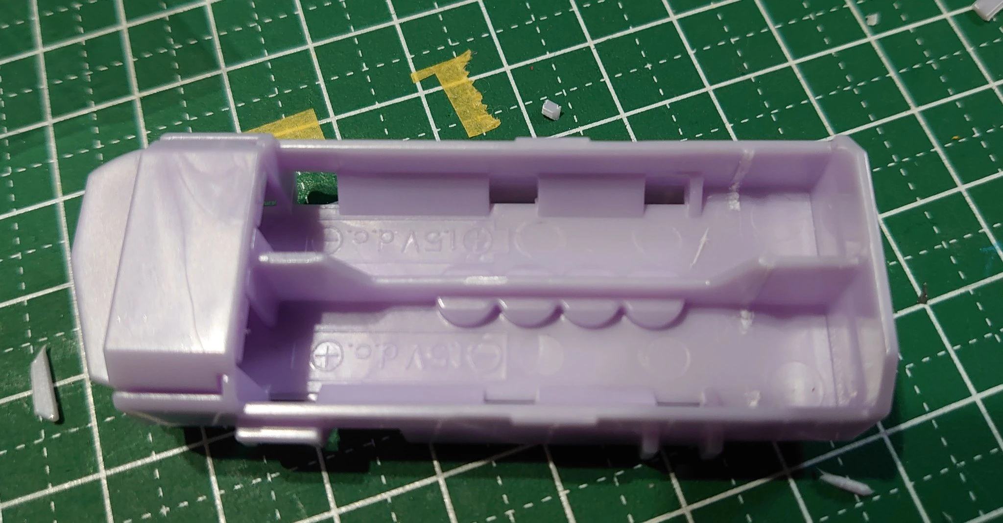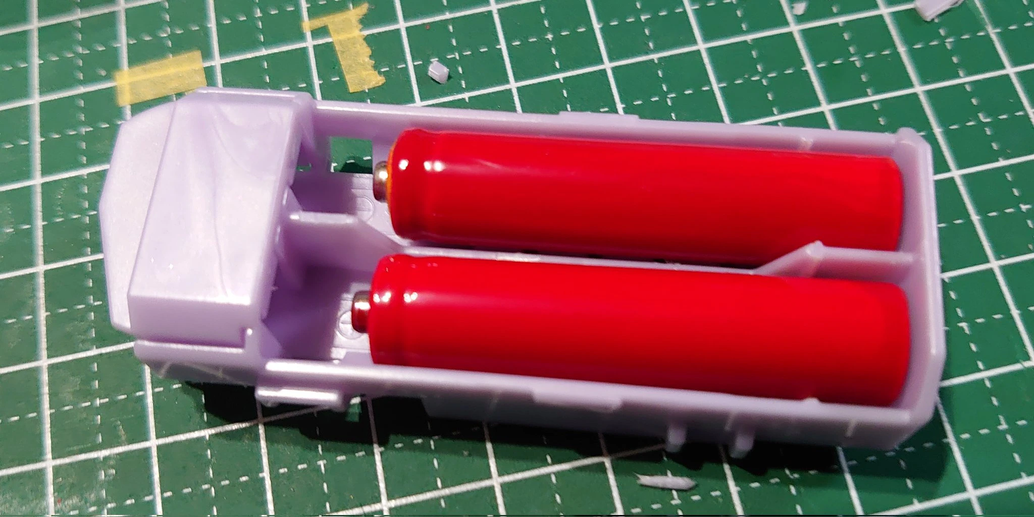 造形に関しては概ね満足な出来なのですが、ほかのギアと違いシューティングファントムのボディではバッテリーボックスの蓋から電池の隙間が見えちゃうという問題があります。